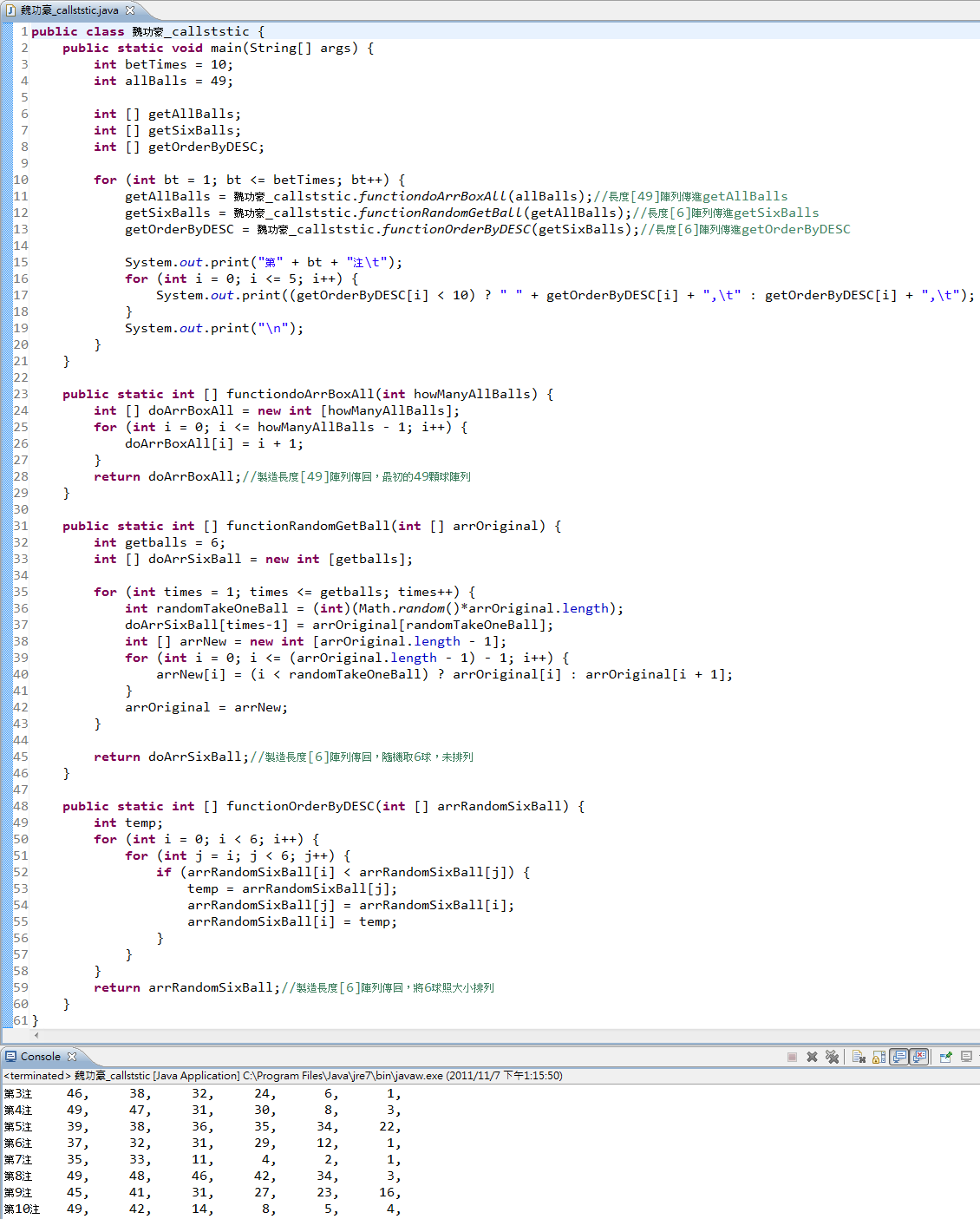 getAllBalls = 魏功豪_callststic.functiondoArrBoxAll(allBalls);//長度[49]陣列傳進getAllBalls